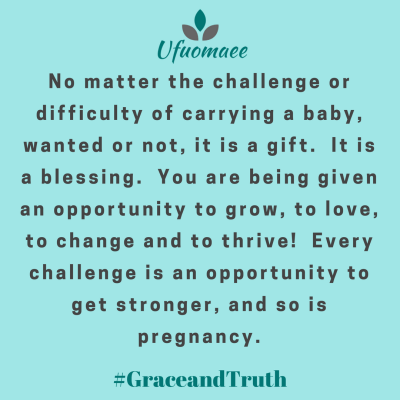 However, pregnancy is a great mystery. I realized that while carrying my first born. So many times I laughed and marveled at God’s humour and design, and how He was doing it without my help! No matter the challenge or difficulty of carrying a baby, wanted or not, it is a gift. It is a blessing. You are being given an opportunity to grow, to love, to change and to thrive! Every challenge is an opportunity to get stronger, and so is pregnancy.