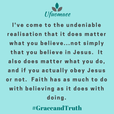 I am, however, realising that the convictions I’ve tried to put aside, are what the Spirit is leading me to once again.  Gradually, I’ve come to the undeniable realisation that it does matter what you believe (Read That Loaded Word: Believe), not simply that you believe in Jesus.  It also does matter what you do, and if you actually obey Jesus or not.  Faith has as much to do with believing as it does with doing.  We are told that Abraham was commended for his faith, by his act of obedience to God (Heb 11:17-19, James 2:21-23), not simply by sitting and saying, “God will make a way, because He must be joking about me killing my own son”.