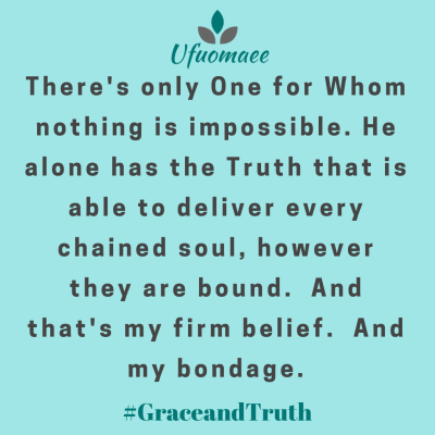 Who can overcome the mind and deliver a soul from its prison? There’s only One for Whom nothing is impossible. He alone has the Truth that is able to deliver every chained soul, however they are bound. And that’s my firm belief. And my bondage. What is yours?
