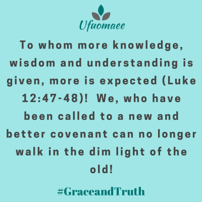 Even within the New Testament and among Paul’s writings, we can see how their knowledge and understanding of many things grew, but some things remained the same.  We need the Spirit of God to be so discerning of the difference.  We need also to remember that to whom more knowledge, wisdom and understanding is given, more is expected (Luke 12:47-48)!  We, who have been called to a new and better covenant can no longer walk in the dim light of the old!