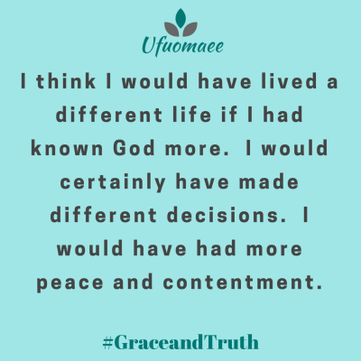 When I think of all the factors that led to that decision to marry someone I hardly knew and had no feelings for, I think one of the things that made be so susceptible was my restlessness for love and marriage.  The other factor was my lack of understanding of God and His grace.  I think I would have lived a different life if I had known God more.  I would certainly have made different decisions.  I would have had more peace and contentment.