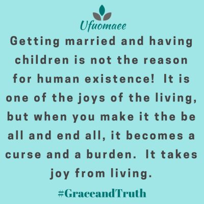Not everyone must marry, though the world pushes all to do so, as though apart from marriage, you are half human. Not every married couple must have children, either. That is not the purpose of marriage and it rarely saves a marriage, for those who succumb to pressure to ‘save’ their marriages!