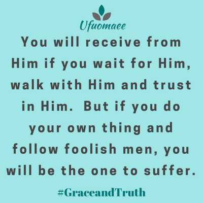 You need to have faith in God and trust Him to provide all you need, even a man. You will receive from Him if you wait for Him, walk with Him and trust in Him. But if you do your own thing and follow foolish men, you will be the one to suffer.
